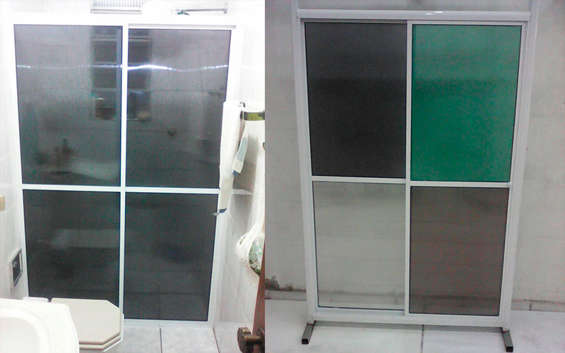 Podem ser em diferentes modelos como de box de vidro de correr ou de abrir, box de vidro articulado, ou com roldanas aparentes; com esquadrias em vários acabamentos.