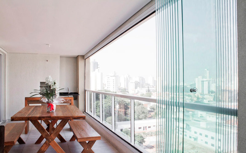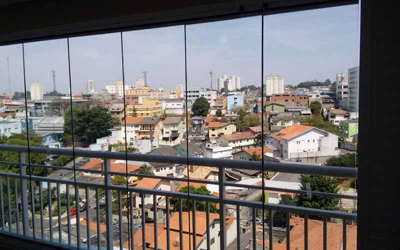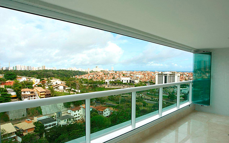 SISTEMA SANFONADO: O mais utilizado atualmente pelos condomínios, é composto por painéis de vidros deslizantes com deslocamento multidirecional, possibilitando abertura total (todos os vidros deslocados para o lado) ou parcial de sua sacada. Sistema composto por Fechaduras com Chaves, para melhor segurança externa e interna.